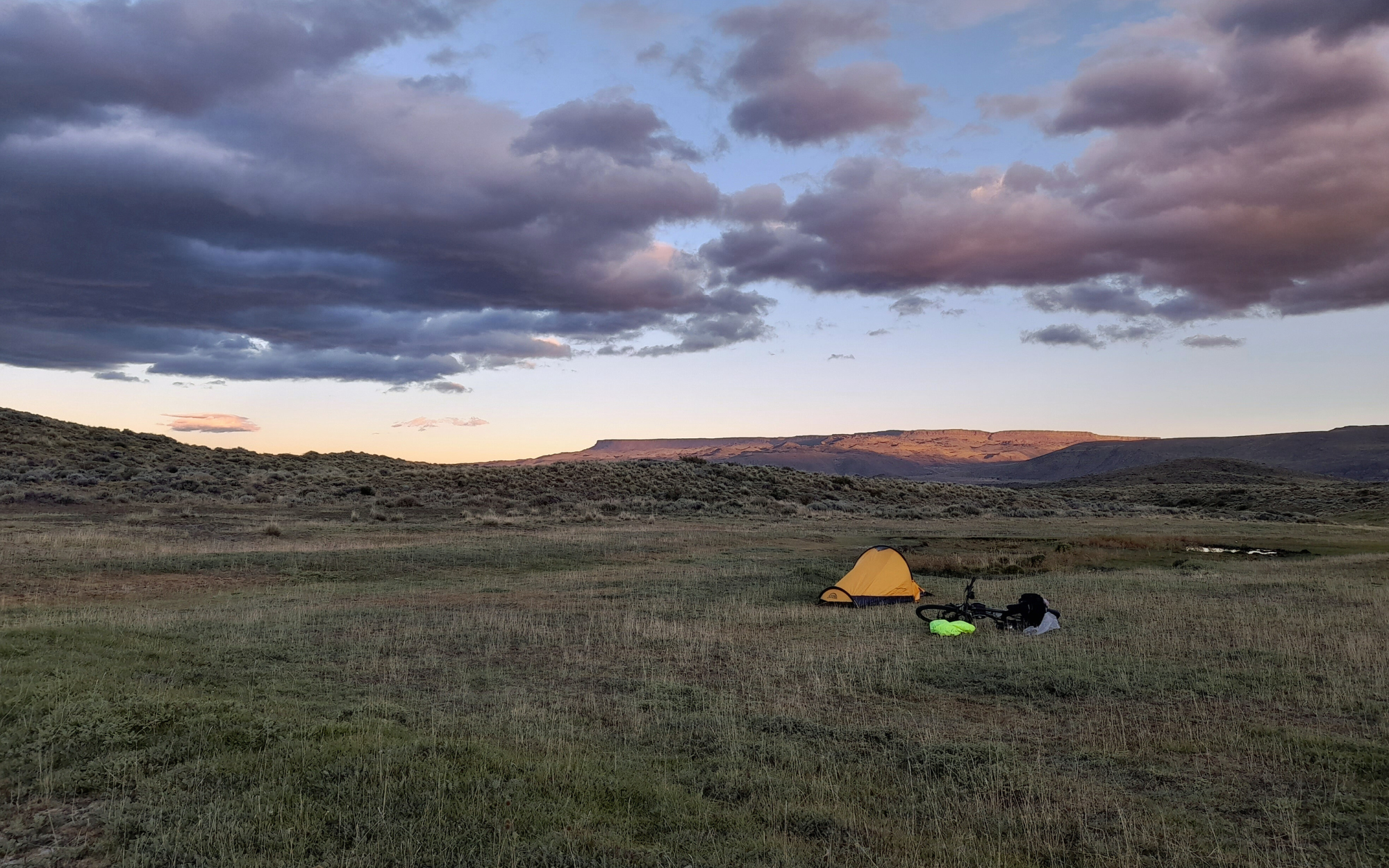 Al poco rato, encontramos a un lado de la ruta un sitio llano, ideal para pasar la noche. Rápidamente, cada uno armó su carpa y nos pusimos a cocinar en compañía del crepúsculo y los últimos rayos de luz. Mientras yo me encargaba del sofrito de cebolla y zapallo italiano, A se preocupaba de la cocción de las lentejas. Como era de esperarse, mi labor culinaria finalizó y las legumbres todavía no estaban listas, así que empecé a observar con mayor atención a mi nueva colega. Su cabello castaño parecía oscurecerse junto con el anochecer y sus ojos color miel —por el contrario— ganaban luminosidad; un brillo transparente bañaba sus córneas. Cuando la escuché inspirar con fuerza al mismo tiempo que cerraba los ojos, tratando de retener el aire en sus pulmones el mayor tiempo posible, pude comprobar que A estaba llorando, pero muy sutilmente, sin derramar lágrimas, acumulando toda su pena en la mirada. Incapaz de saber el motivo de su notorio cambio de ánimo, procuré consolarla.