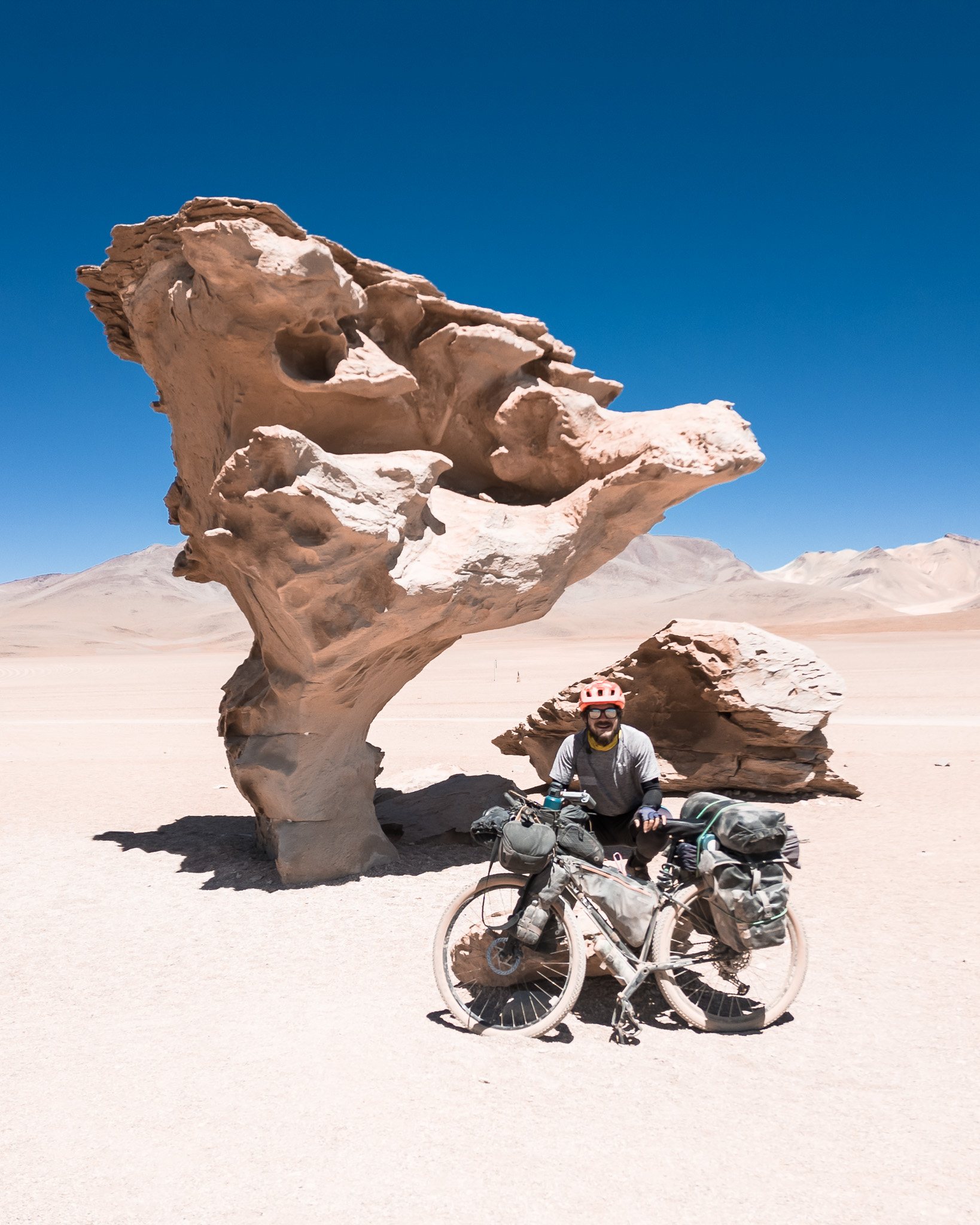 Viajar en bici permite fusionarse con el paisaje, ver flamencos a menos de 50 metros, cenar con vizcachas en la mesa de piedra y dormir junto a géiseres en actividad. Todo esto gracias a la determinación de una persona y su bicicleta cruzando el desierto más seco del mundo.